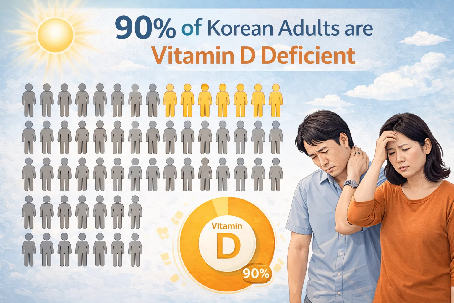 최근 보건복지부와 관련 건강 통계에 따르면, 한국 성인의 90% 이상이 비타민D 결핍 상태라는 결과가 발표되었습니다. 특히 현대인들의 실내 중심 생활방식과 식단 불균형은 비타민D 부족을 심화시키고 있습니다. 이번 글에서는 한국 성인의 비타민D 결핍 현황과 그로 인한 면역력 저하, 그리고 건강 관리의 중요성에 대해 알아보겠습니다.